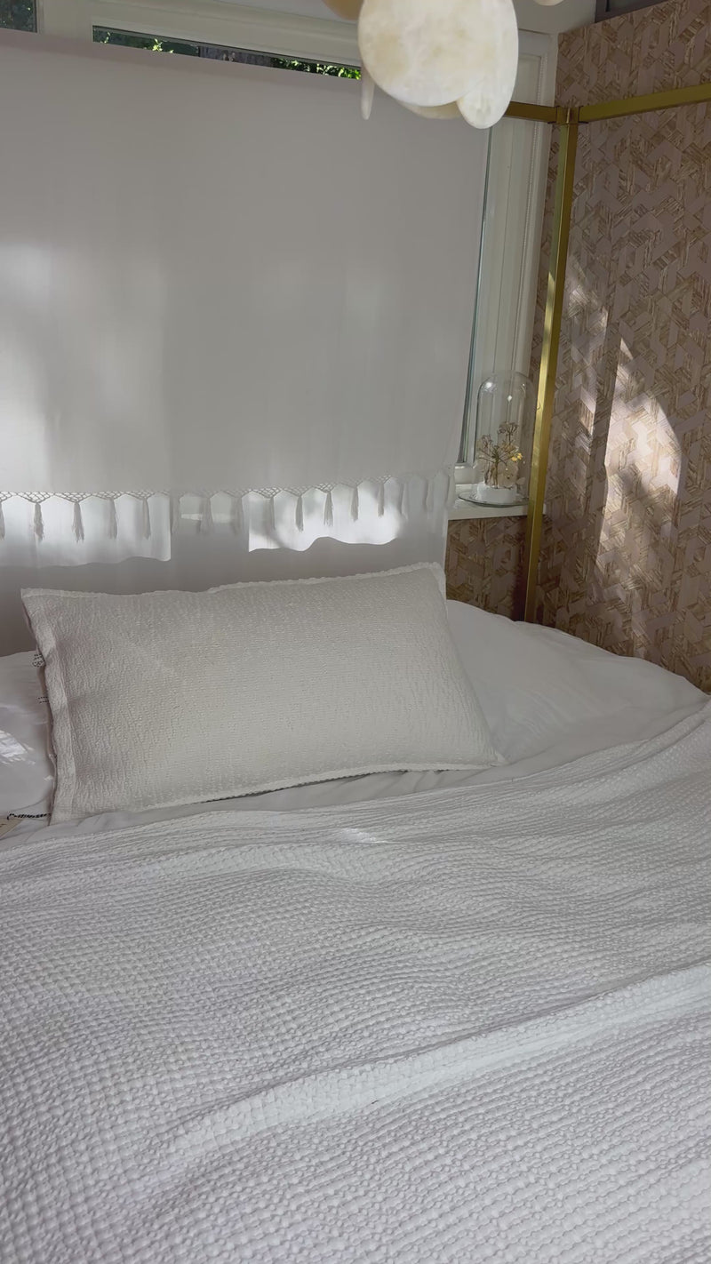 Jacquard geweven kussen – naturel & wit – 90 x 50 cm | + inclusief binnen kussen