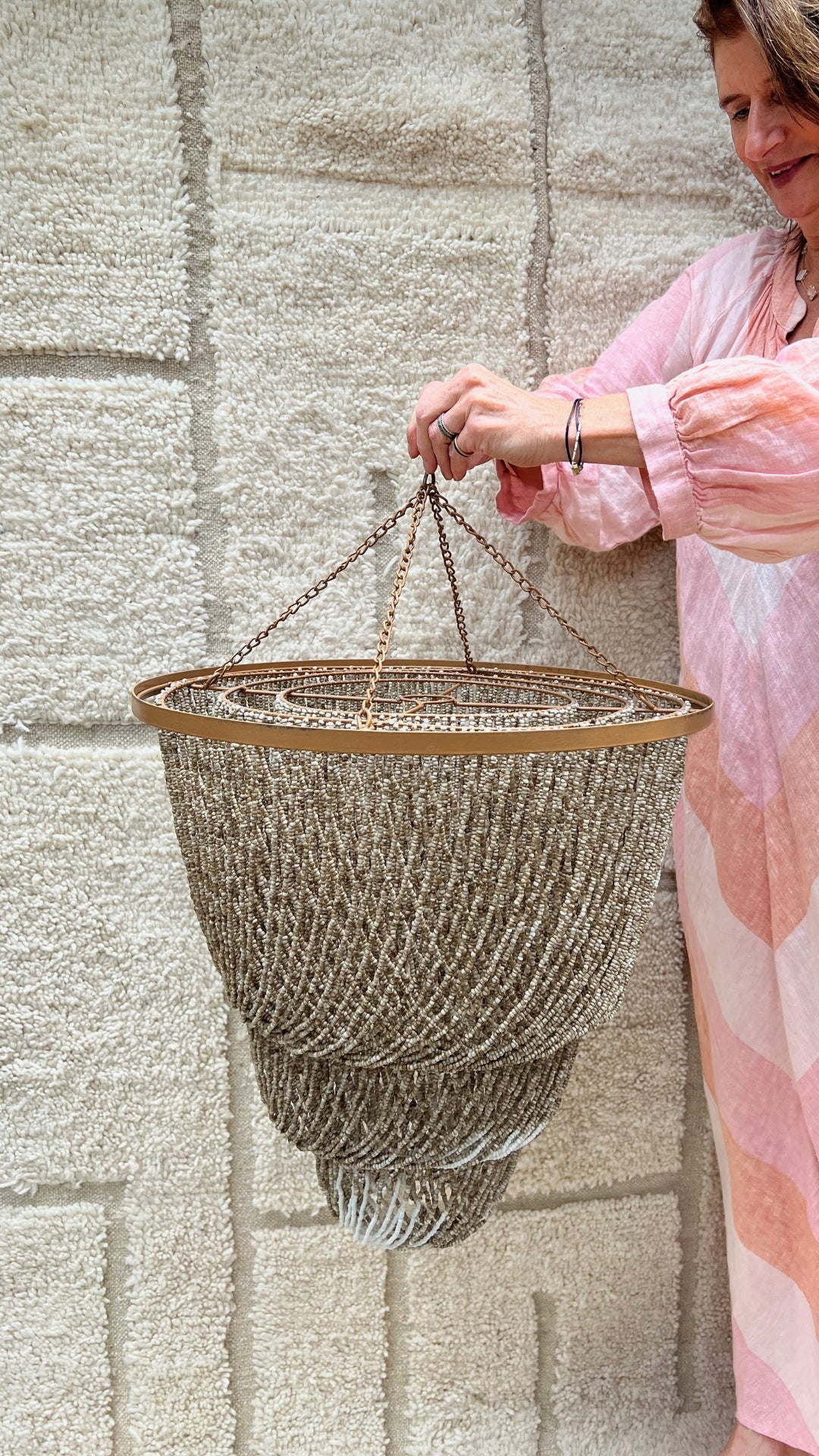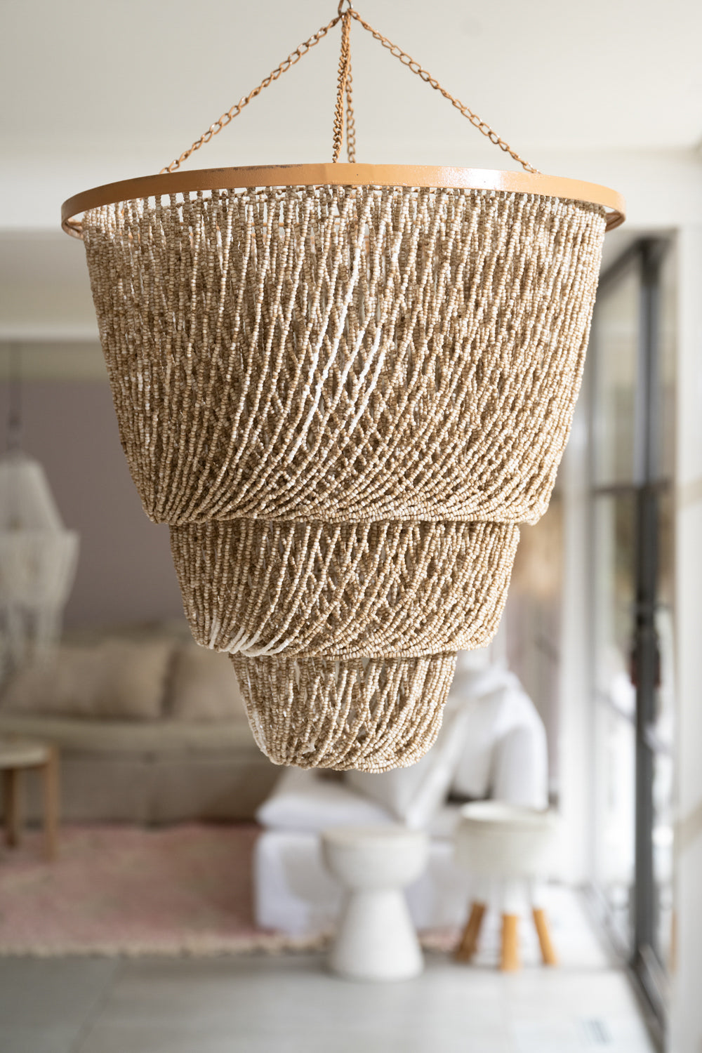 Elevate your interior with this one-of-a-kind beaded hanging lamp and experience the perfect blend of functionality and style.