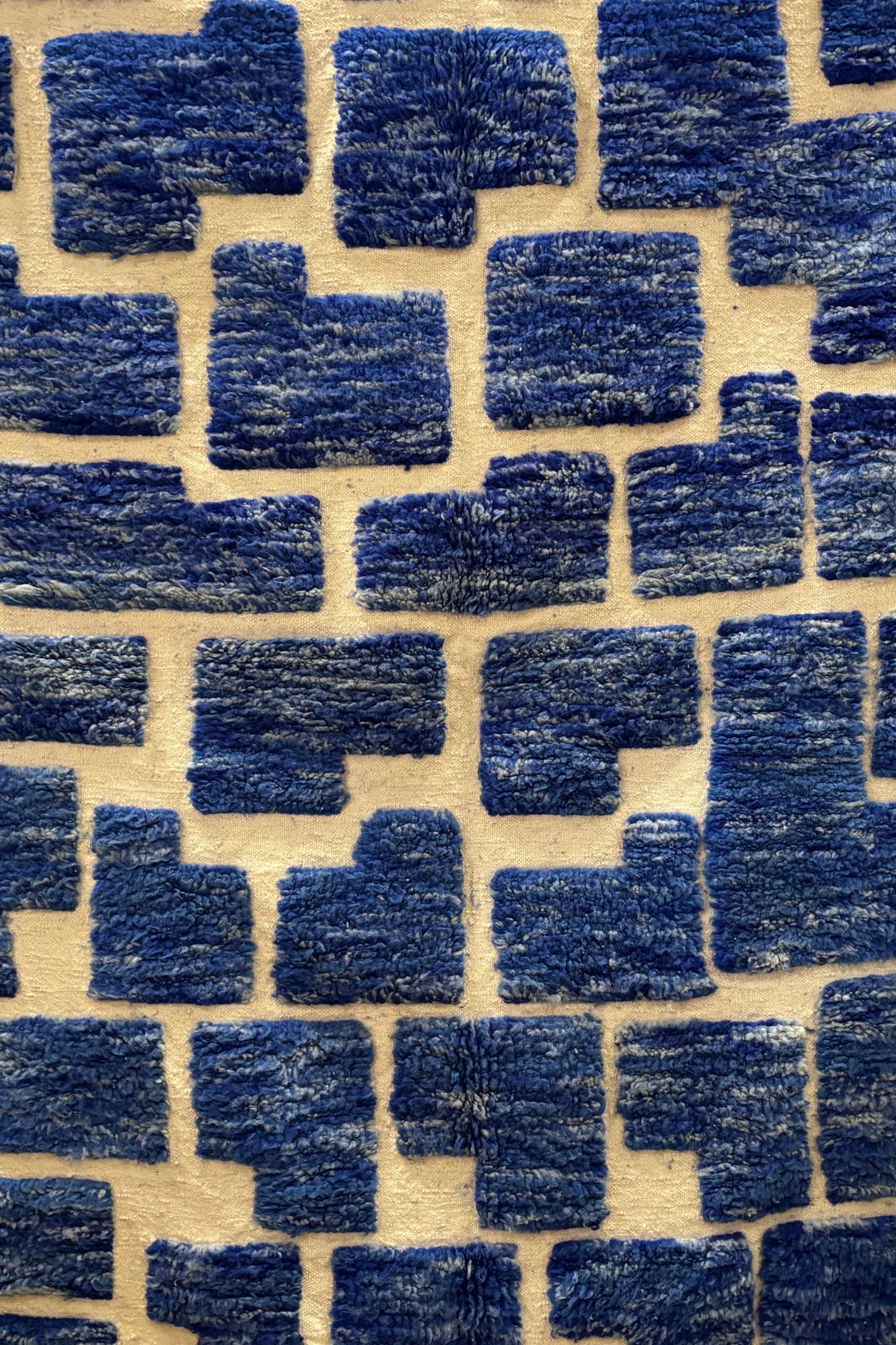 Blauw/creme geblokt tapijt - 100% Wol | uniek stuk