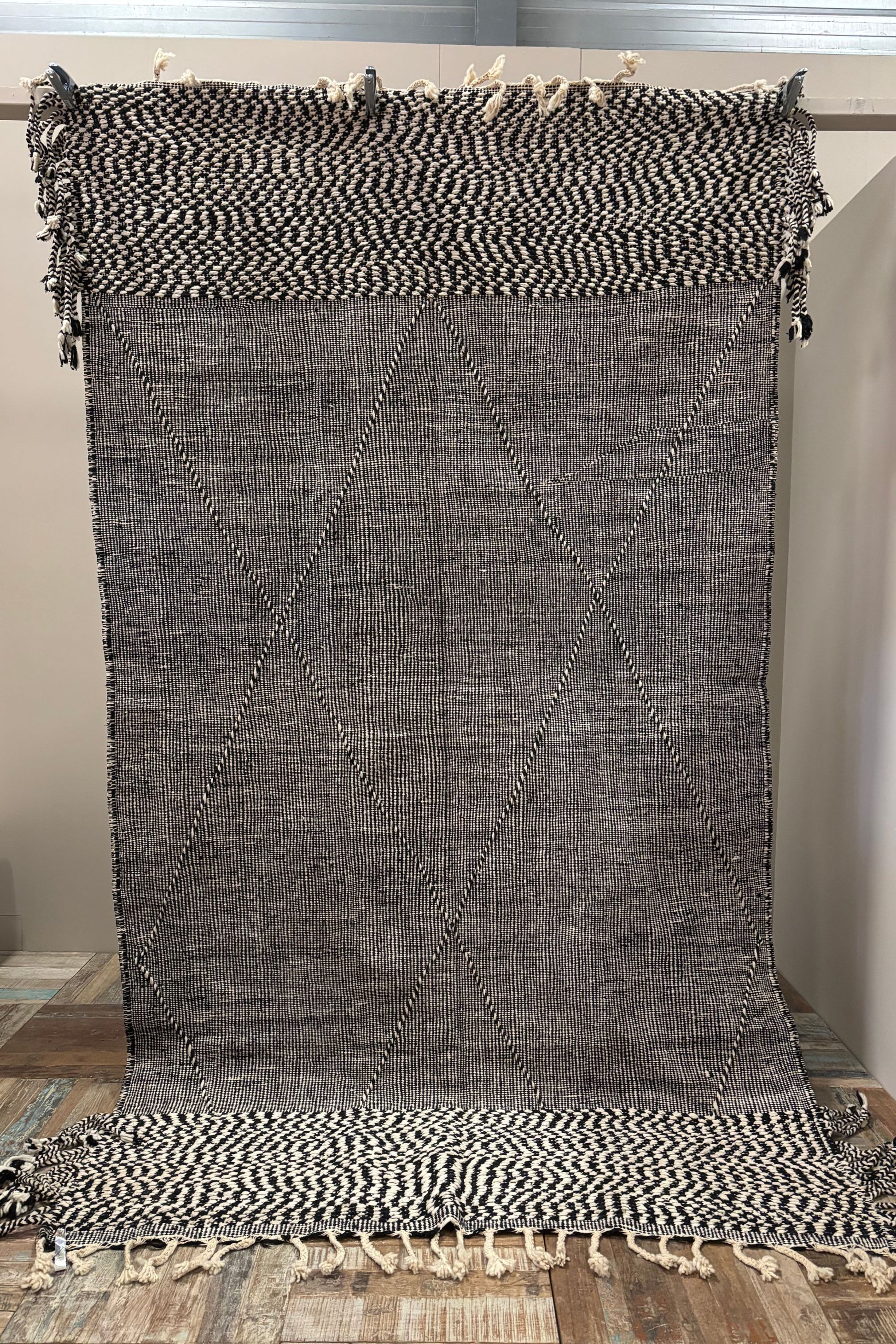 Zwart wit wollen laagpolig tapijt , 210 x 330 cm