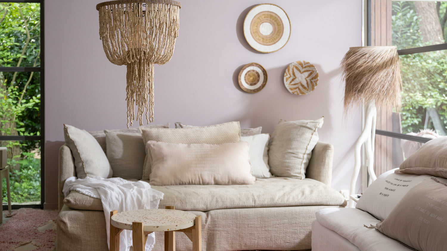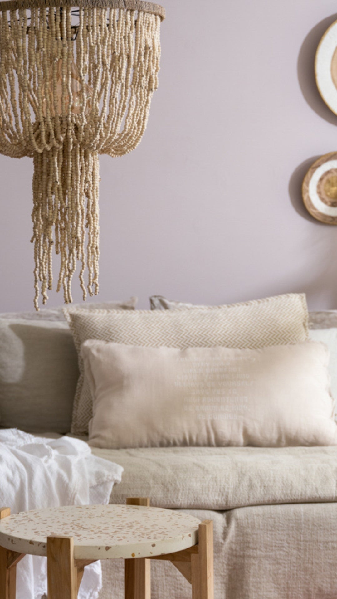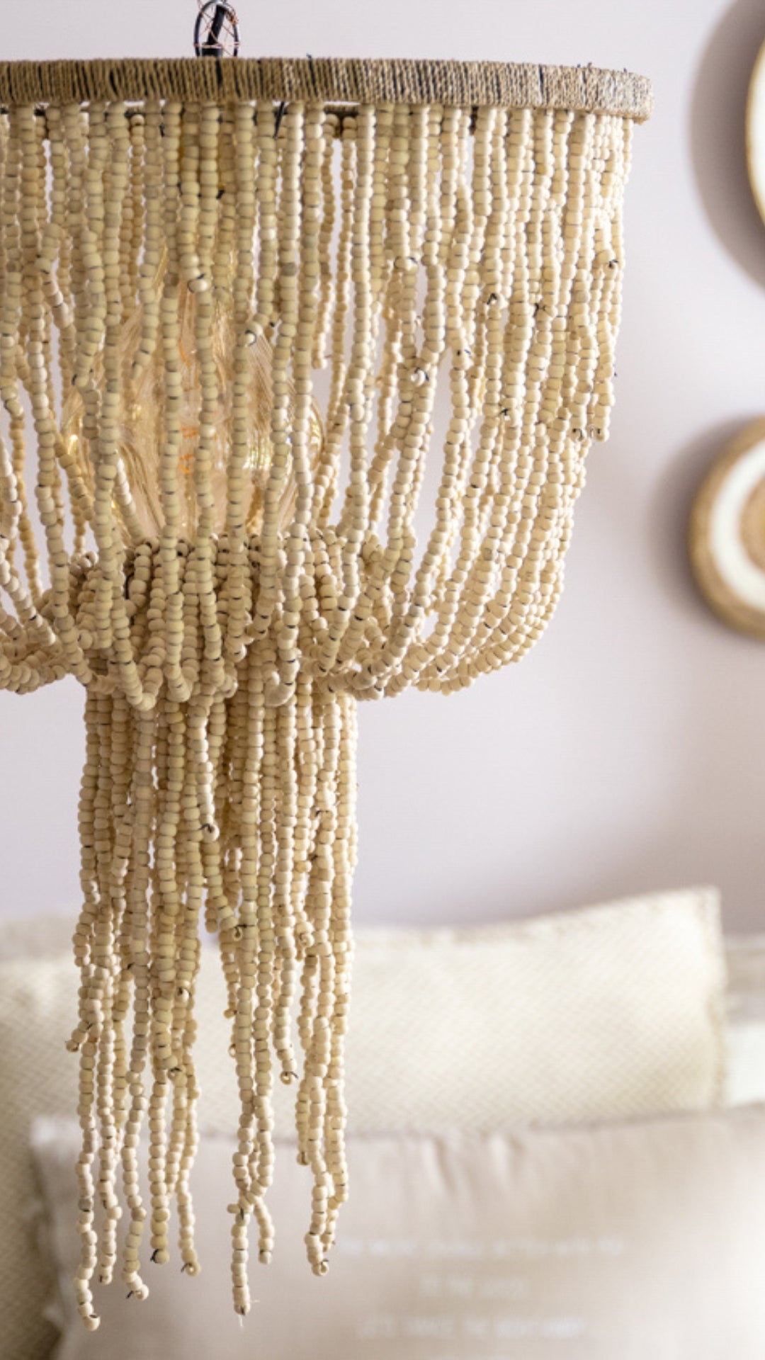 Beaded Hanging Lamp - Natural | Wood