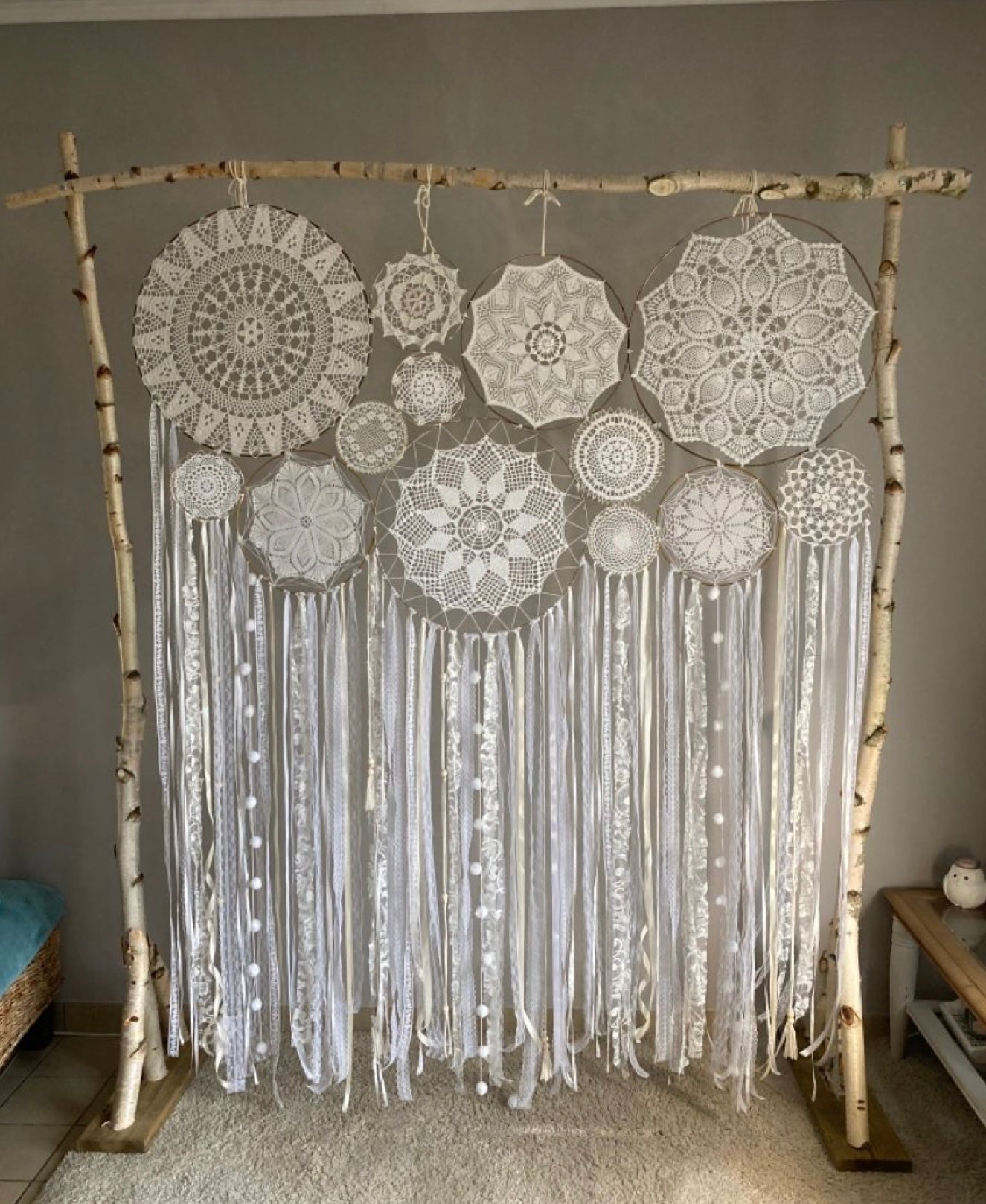 Our set of 10 dreamcatchers, available in sizes 20, 30, 40, and 50 cm, is the perfect decorative touch for a white party or wedding. Handmade with delicate details, these dreamcatchers add a whimsical, bohemian flair to your special event, creating a serene and elegant atmosphere. Their varying sizes make them ideal for a stunning display, whether hung indoors or outdoors.