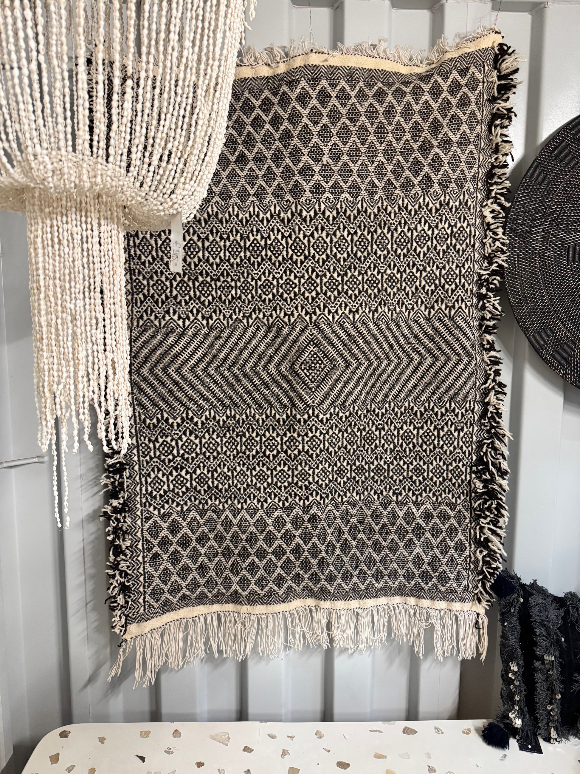 Wandkleed-Textiel kunst- berber wandkleed 100% wol| zwart wit