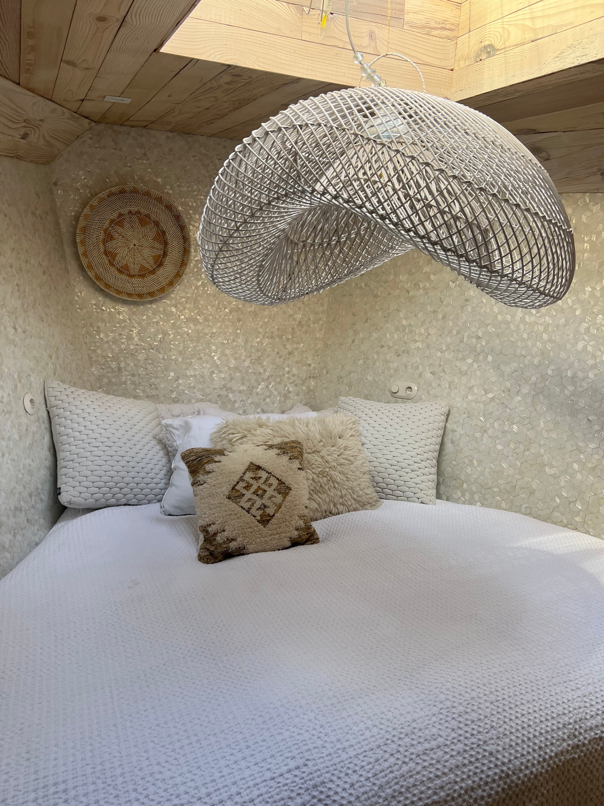 The combination of the natural look of rattan with the playful shape of a cloud looks amazing above a dining table and gives a beautiful light through the rattan in the evening.