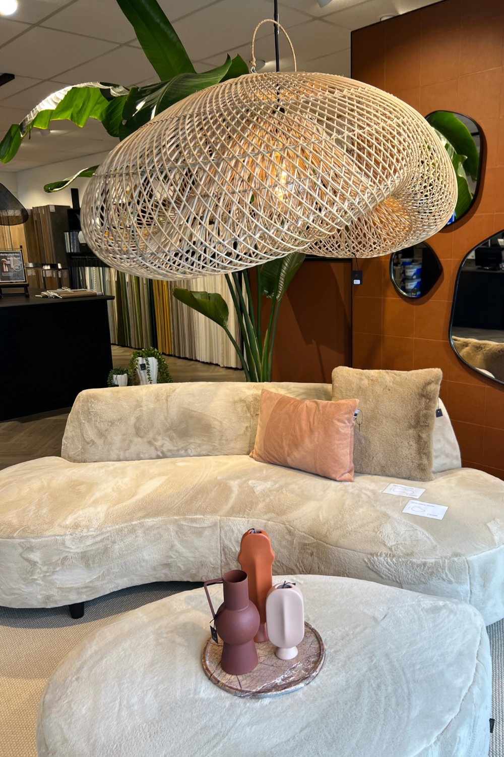 This XL rattan hanging lamp in the shape of an organic cloud is unique.