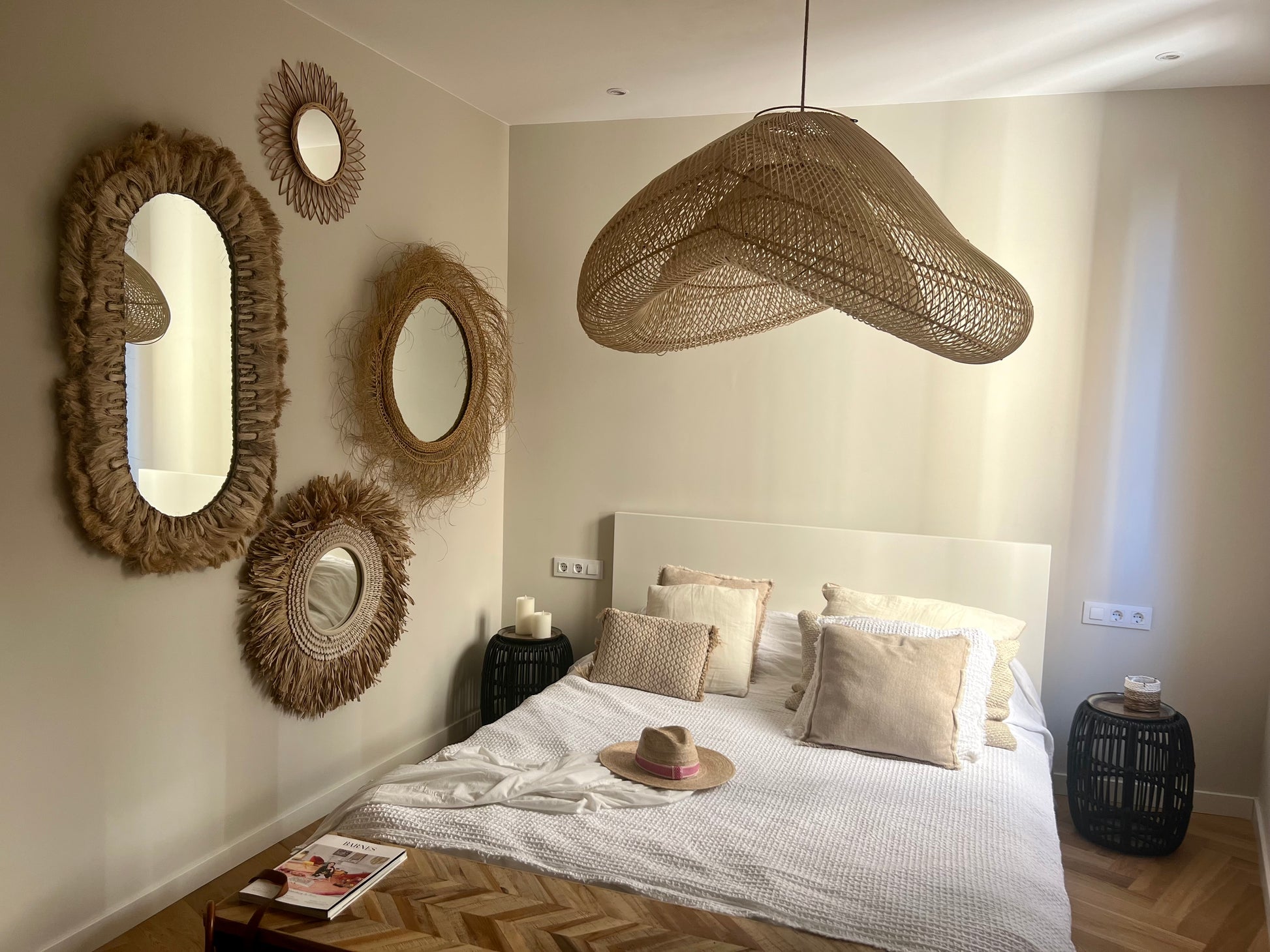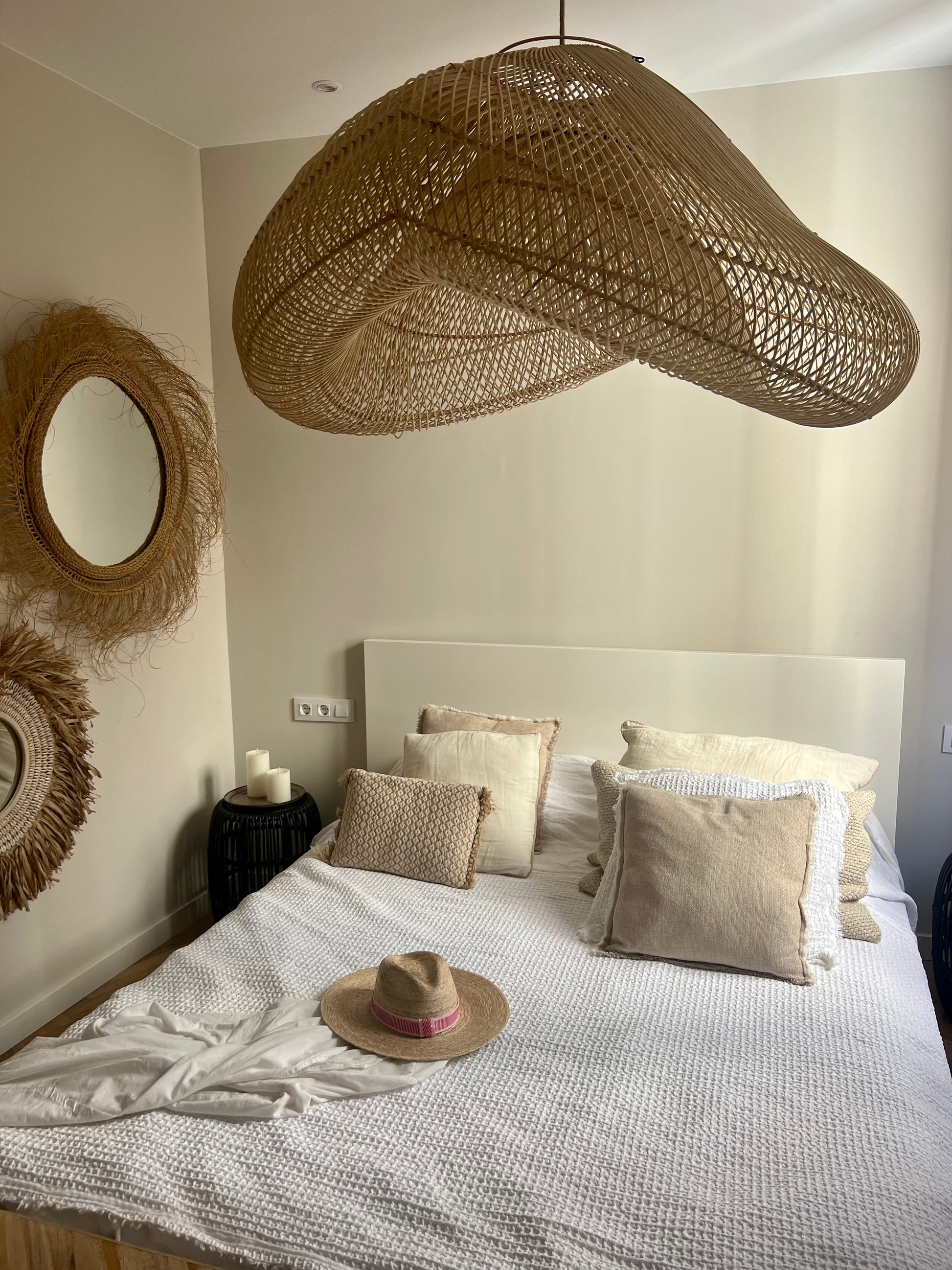The combination of the natural look of rattan with the playful shape of a cloud looks amazing above a dining table and gives a beautiful light through the rattan in the evening.
